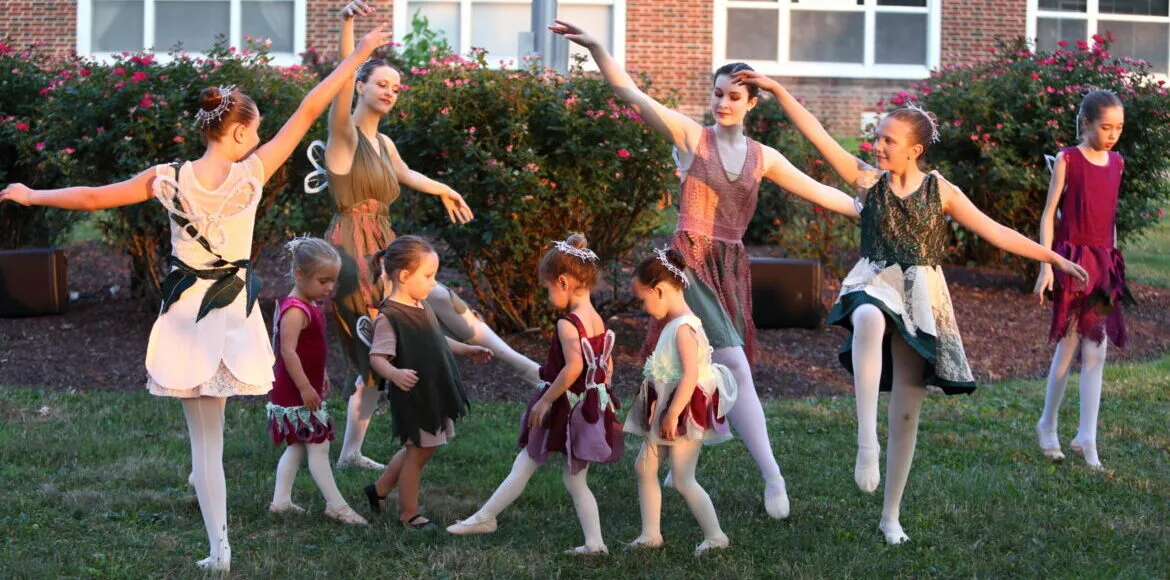 A ballet camp where dancers take ballet class, learn original choreography, create a costume and perform at A Victorian Fairy Garden Party. See Summer Ballet Intensives page.